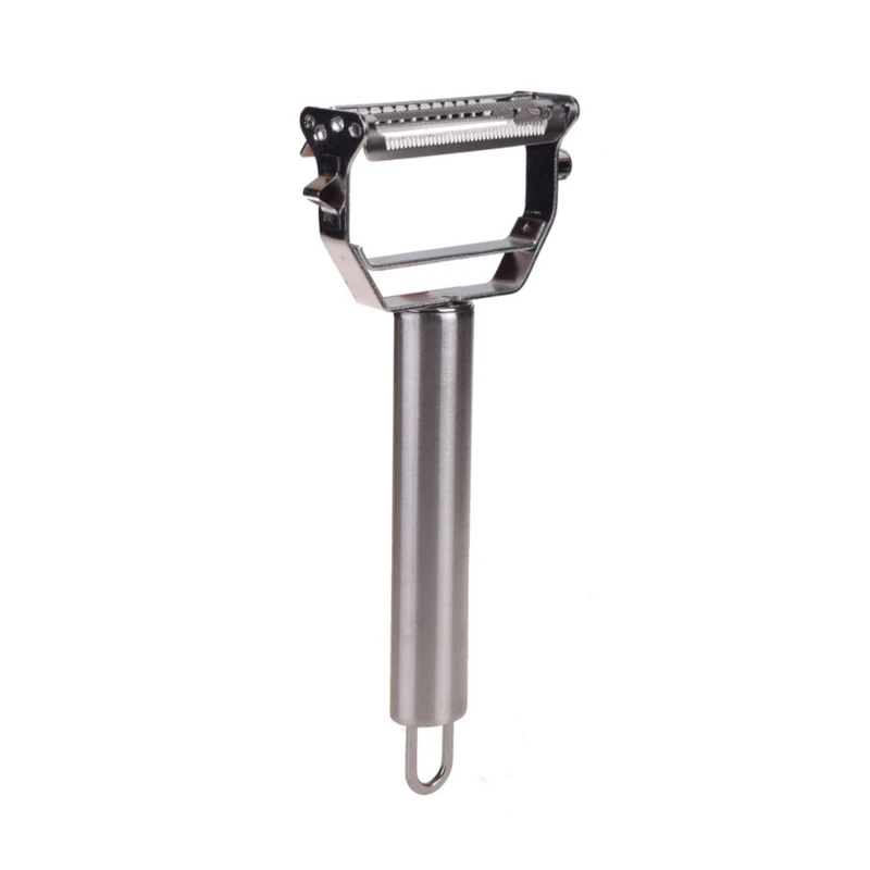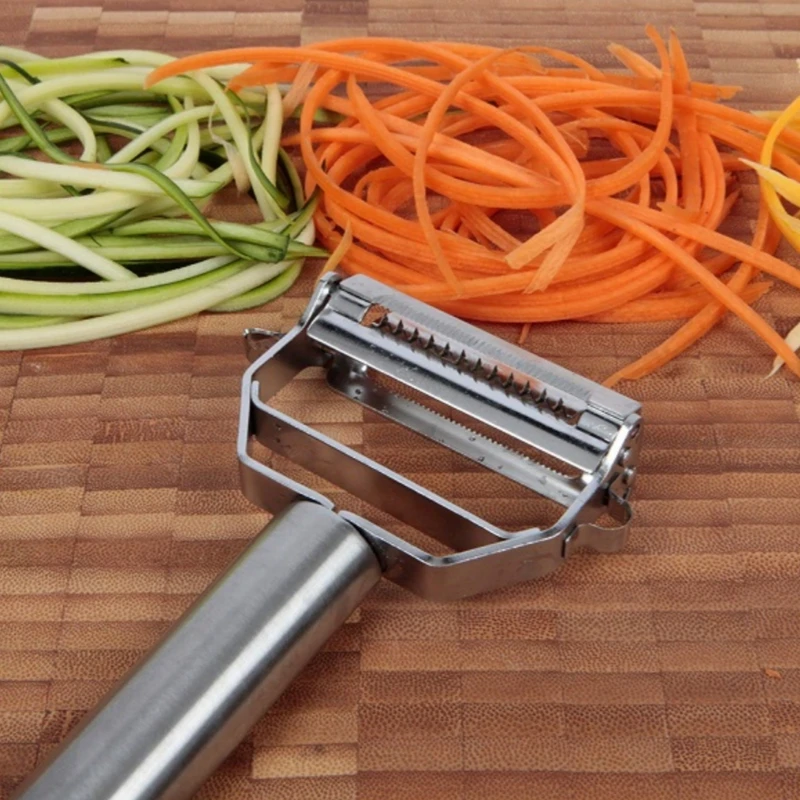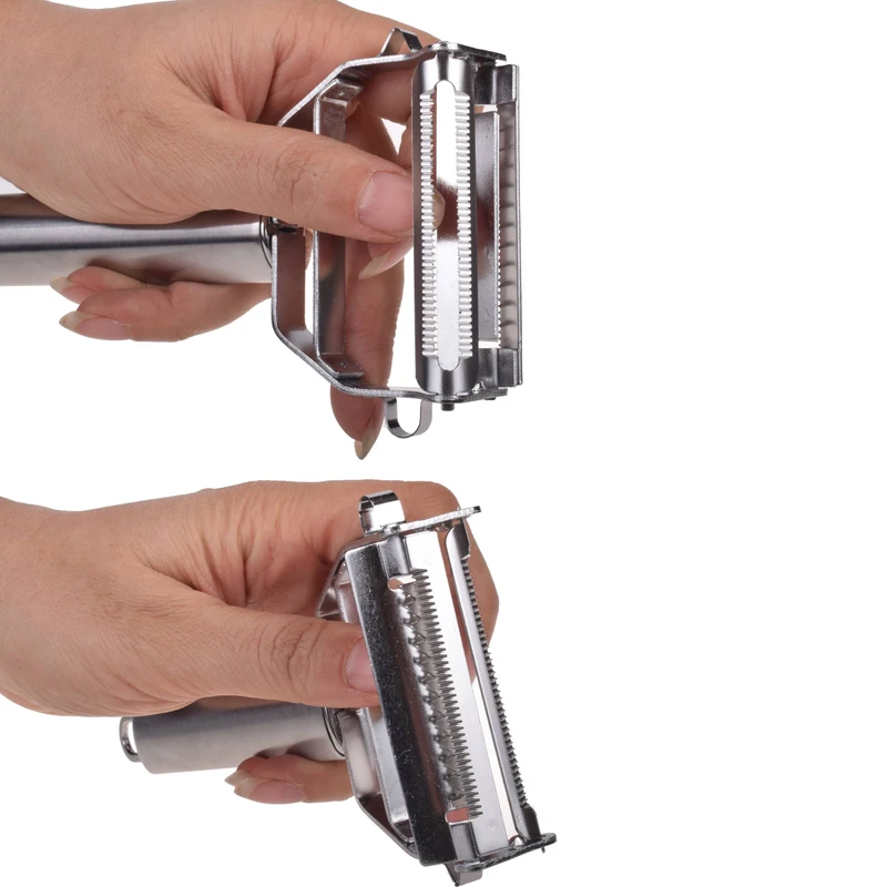 رشته کن و پوست کن استیل وسیله ای پر کاربرد بین ابزارهای آشپزخانه میباشد. این رشته کن با طراحی دو تیغه هم رشته کن است و هم پوست کن و بر حسب نیاز میتوانید از هر طرف دستگاه استفاده نمایید.دو تیغه تیز و استیل ضد زنگ برای پوست کندن و رشته کردن کدو هویج سیب زمینی و ...